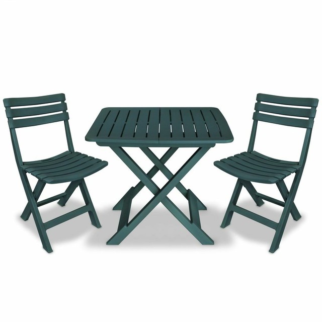 4.9 out of 5 stars. Grdenised indoor & outdoor 3 piece foldable bistro patio plastic dining set, round table and two chairs. This outdoor dining set is made of durable plastic, which makes it weather resistant and easy to clean. Not available for pickup and same day delivery. If you just need a folding chair or two instead of a full dining set, we also sell single chairs.