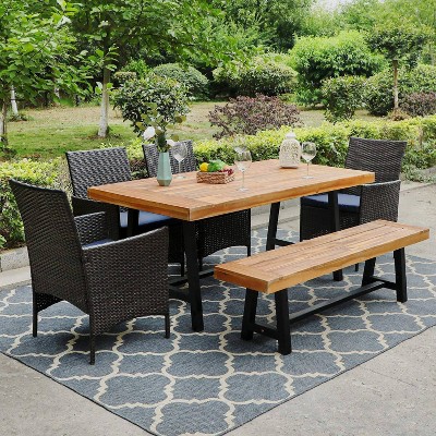 Built with a 1.57 diameter umbrella hole in the center of the table to add a patio umbrella for shade. The novogratz poolside paulette steel 3 piece patio table and bench set is ready for your next backyard picnic or barbeque. Shop patio tables from nebraska furniture mart. Choose from patio sets with or without cushions, or tables that seat four or eight people. Crafted of solid acacia wood in a natural teak finish, the chunky rectangular tabletop features a planked design for a rustic appearance. This new patio bench is constructed of cast aluminum with our unique antique bronze finish. Outdoor furniture options are endless with chairs and seating, tables, benches, outdoor cushions and pillows. Patio coffee tables (23) patio dining tables (41) patio end tables (14) patio folding tables (1) patio table bases (2) patio table tops (1) picnic tables (5) frame material. Outdoor patio furniture sets deck furniture outdoor dining patio set bar height patio dining sets aluminum patio dining sets. Find great deals or sell your items for free. Get it as soon as mon, jul 19. Find a great selection of patio tables at nfm! Outdoor table bench set of 3 wood patio dining tables garden furniture teak.